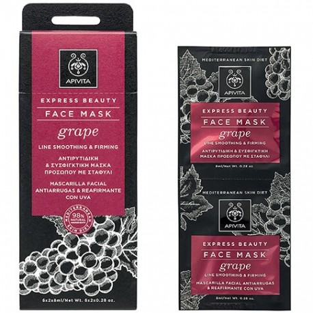 EXPRESS BEAUTY face mask with grape, the secret of longevity in the areas of the Mediterranean, rich in nourishing elements, offers an instant antioxidant and antiaging effect to the skin.