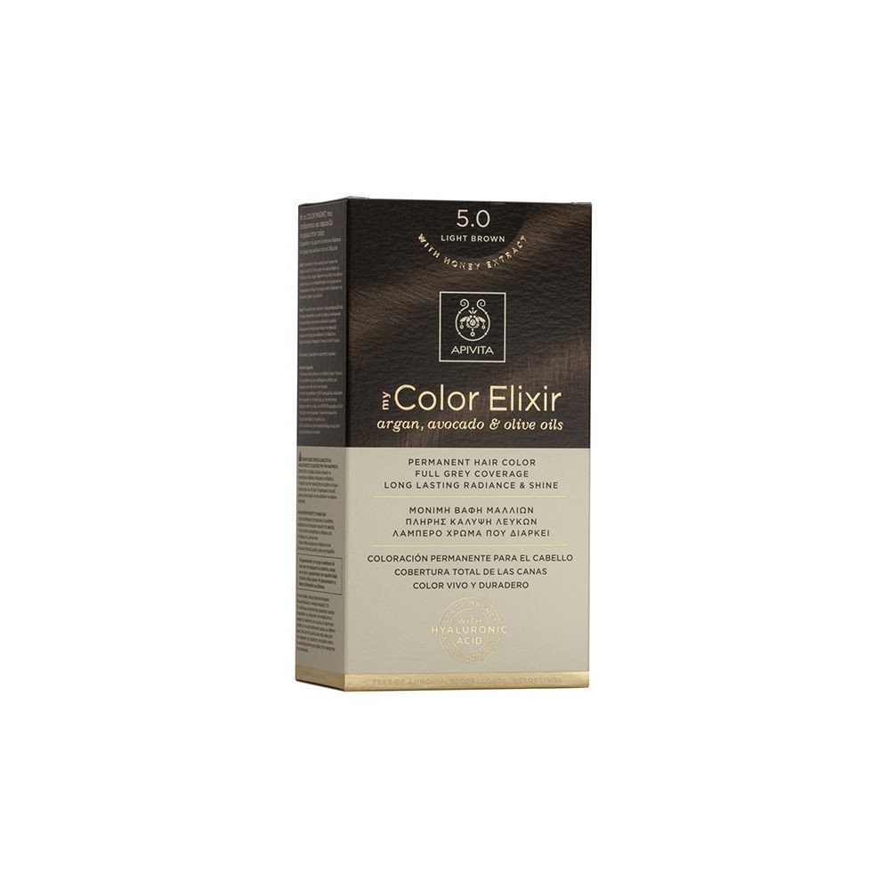 Apivita's My Color Elixir permanent hair color has been specially designed to focus on safety, naturalness and a professional color result with respect to the natural balance of the scalp. With Color Magnet, an innovative system which stabilizes and seals the color into the hair structure. Contains 3 precious oils & hyaluronic acid, resulting in a rich and radiant result that lasts! Gives full coverage of white hair and impressively bright color of long duration. It has a pleasant aroma and composition that respects the scalp with a creamy texture that does not run, for easy application.